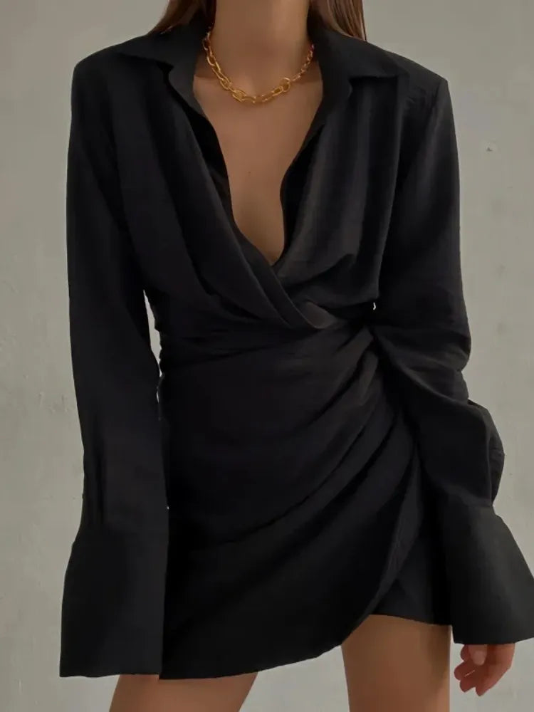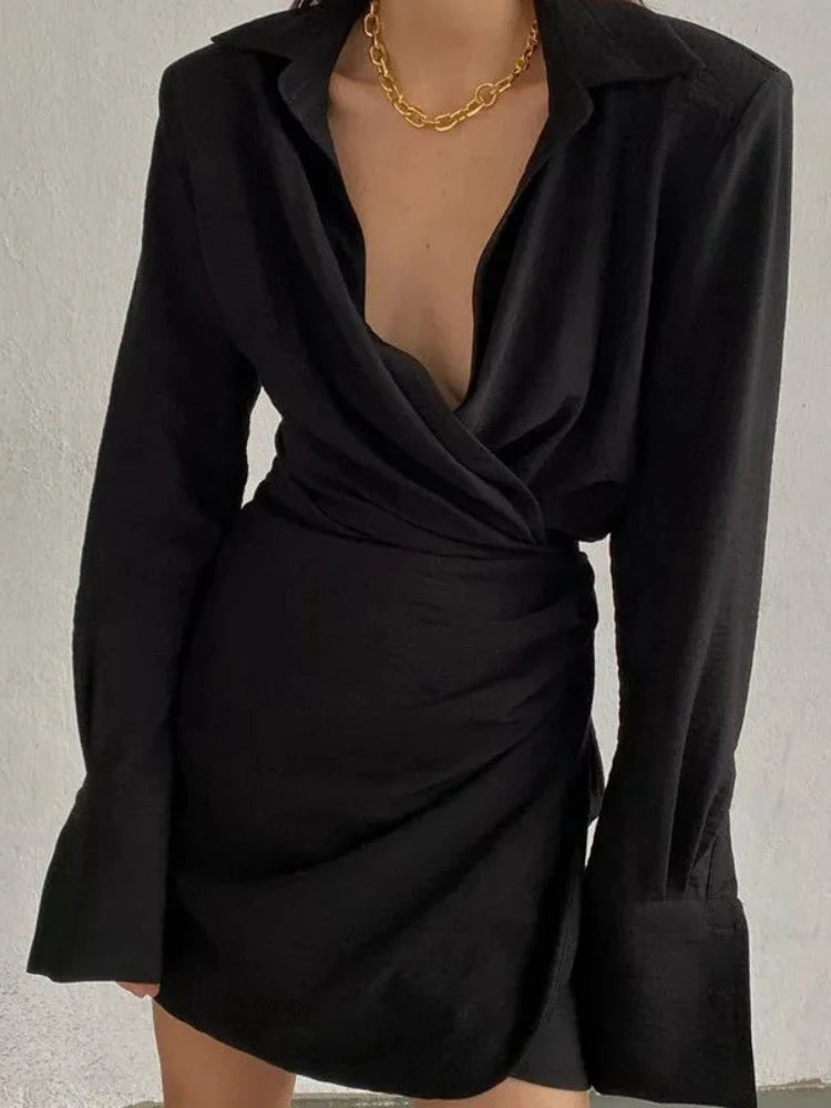Black V-neck Shirt Dress