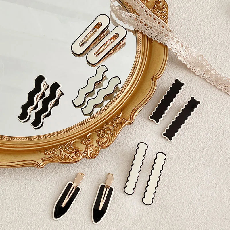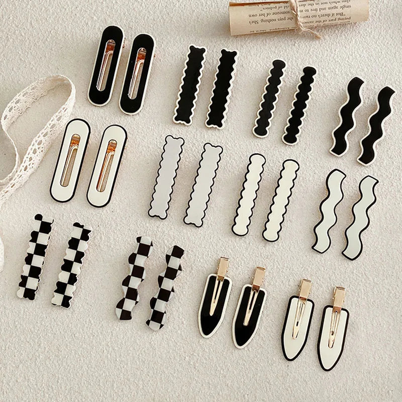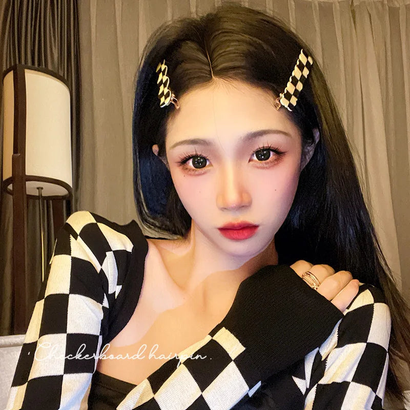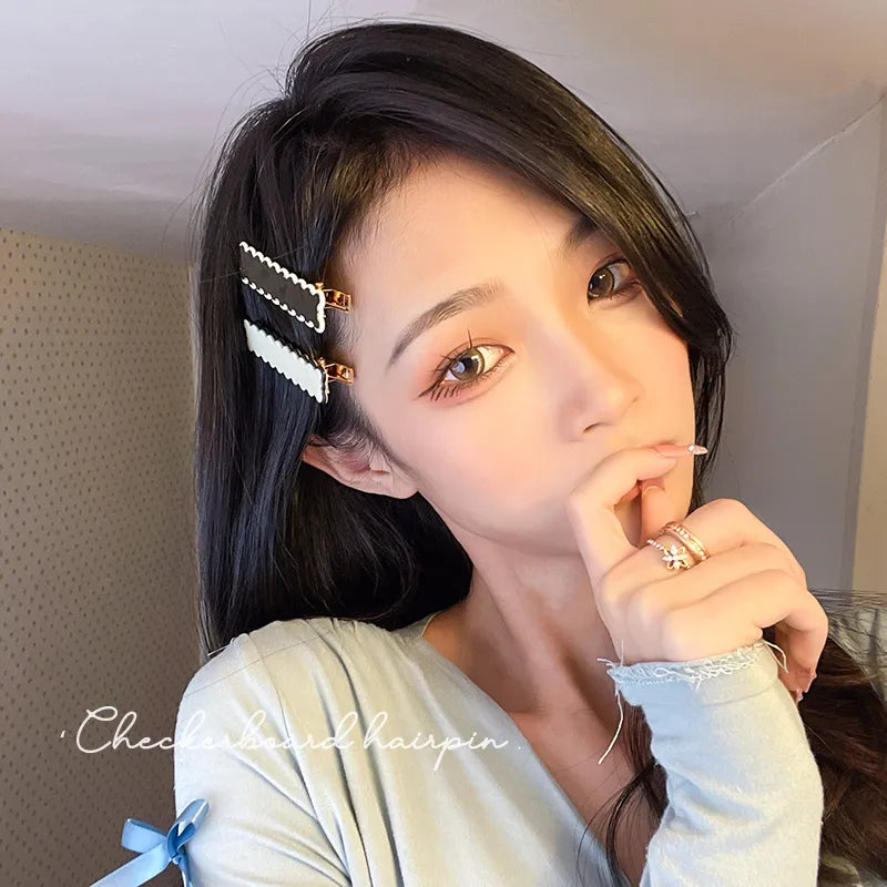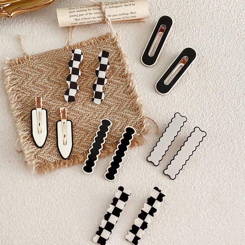 2/4/6pcs/set Women Elegant Black White Checkerboard Geometric Hairpins Sweet Side Hair Clips Barrettes Fashion Hair Accessories