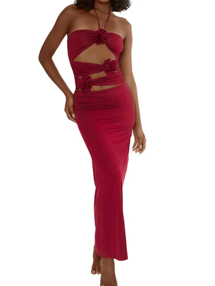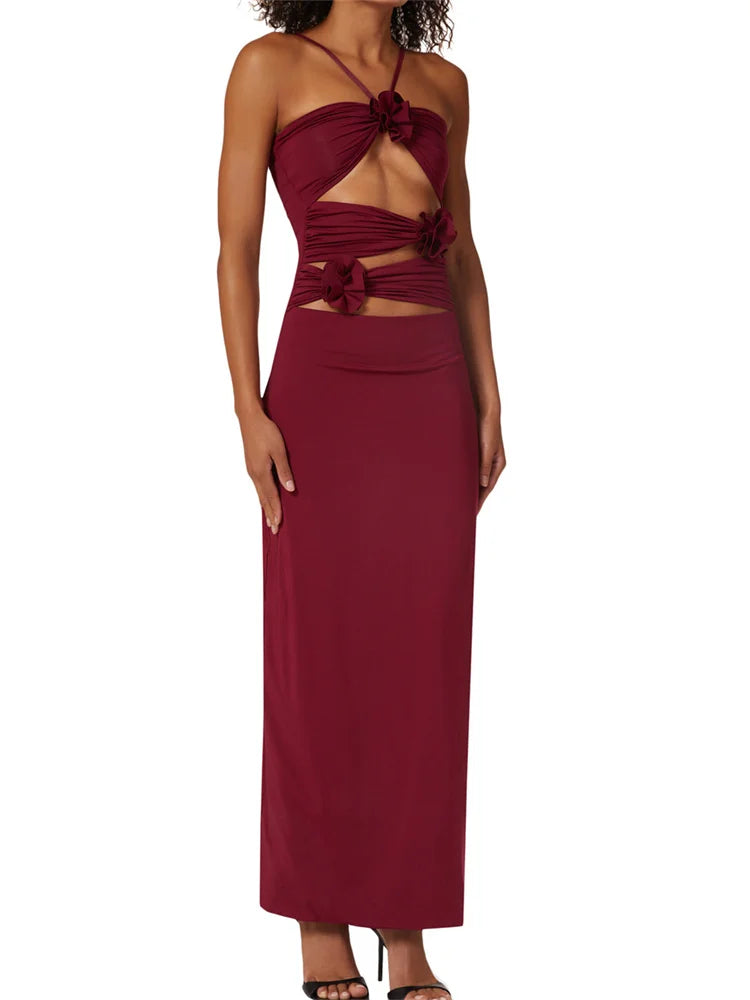 CHRONSTYLE Y2K 3D Flowers Fairy Dresses Sexy Hollow Out Slim Long Dress Summer Back Split Beach Party Club Outfits Vestidos 2023