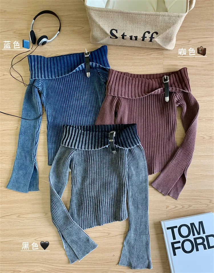 Indulge in luxury with our Knitted Sweater. Made of soft, high-quality cotton, this ribbed knit sweater showcases a modern off shoulder design and elegant buckle detail. Stay stylish and comfortable in this must-have piece.